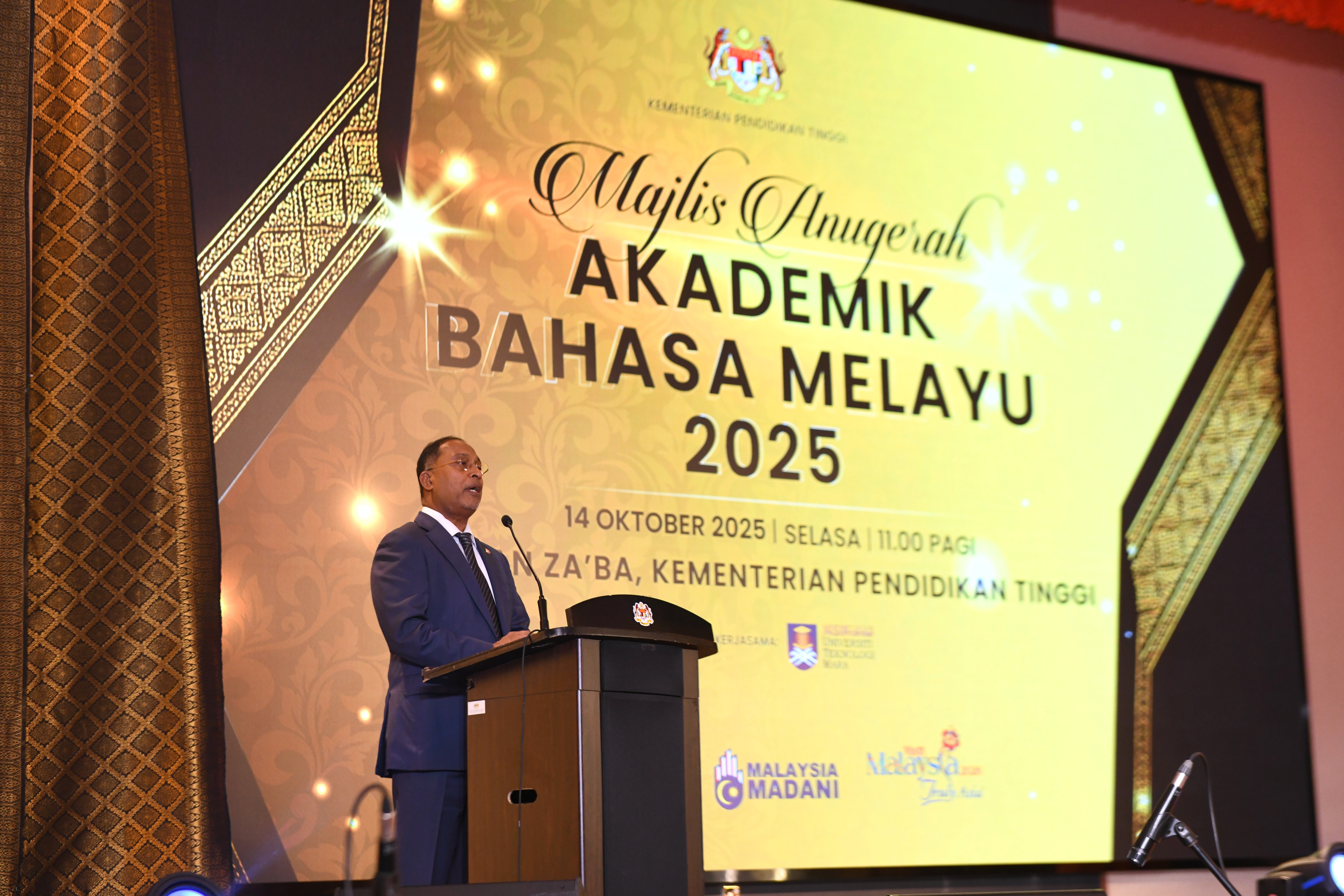 Kementerian Pendidikan Tinggi (KPT) terus memperkukuh agenda pemartabatan bahasa Melayu sebagai bahasa ilmu melalui penganjuran Majlis Anugerah Akademik Bahasa Melayu (AABM) 2025 yang berlangsung dengan penuh gemilang di Dewan Za’ba, KPT pada pagi ini.