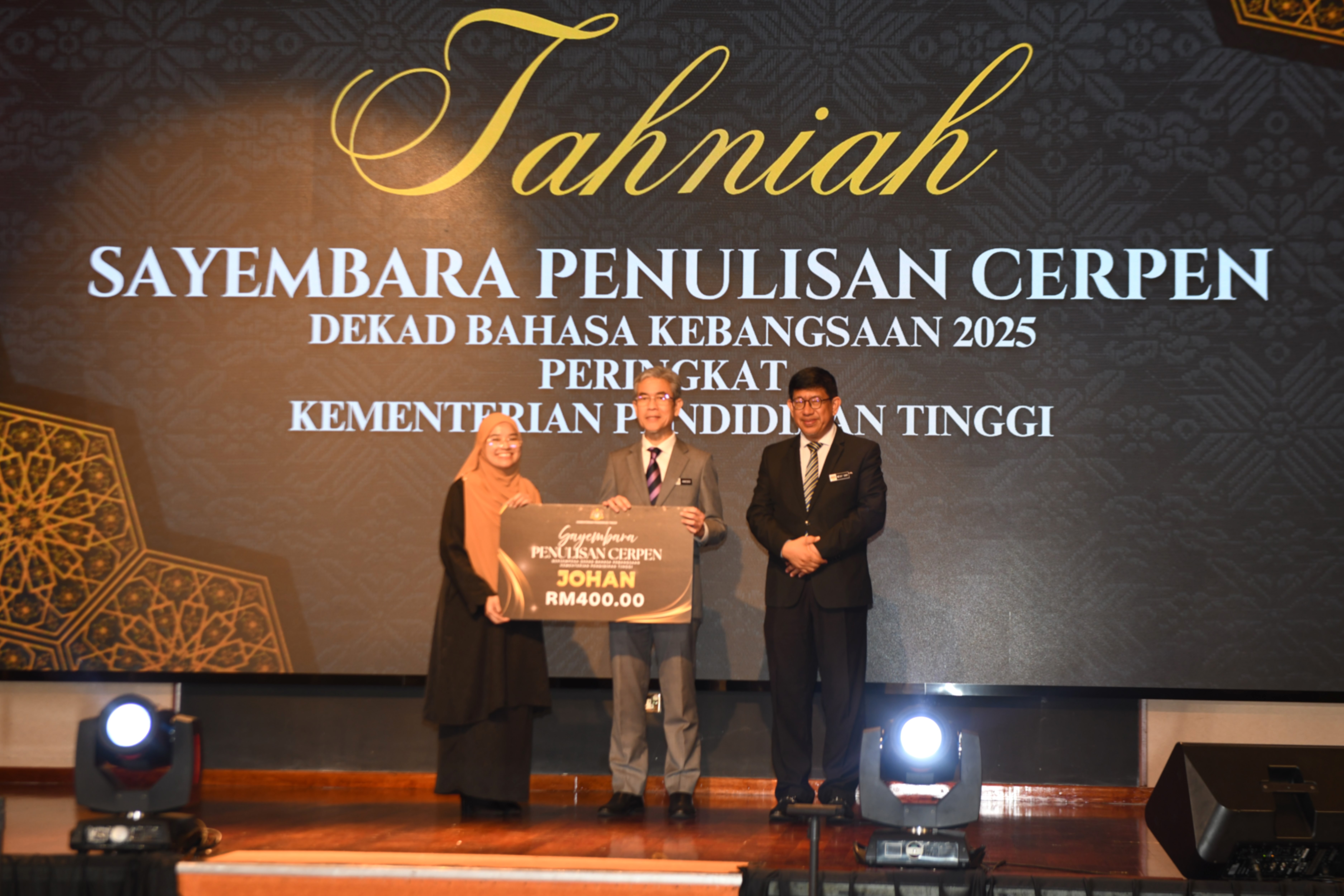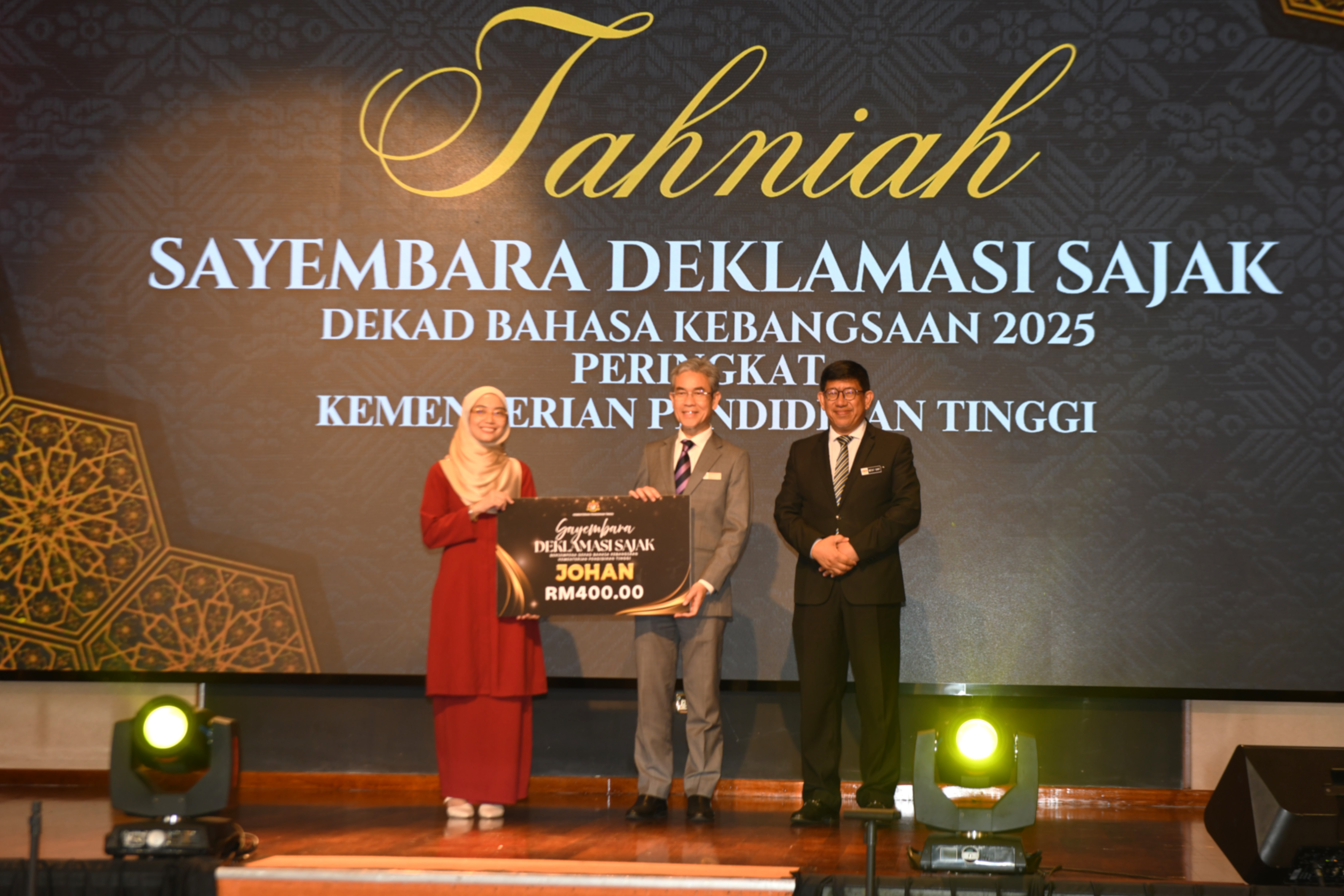 Dalam pada itu, majlis turut menyaksikan penyampaian hadiah kepada pemenang Sayembara Deklamasi Sajak dan Sayembara Penulisan Cerpen sempena Dekad Bahasa Kebangsaan peringkat KPT serta sesi forum ilmiah sebagai wadah perkongsian pandangan tentang isu-isu semasa dalam memartabatkan Bahasa Melayu yang menjadi asas ketamadunan bangsa Malaysia.