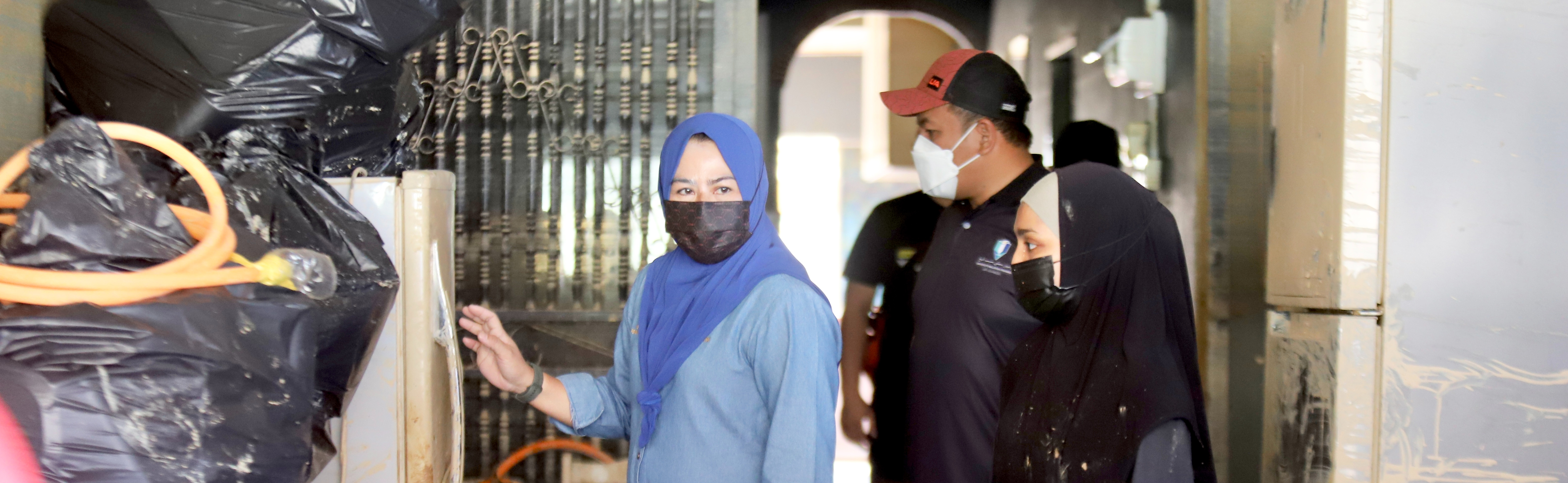 YB Datuk Seri Dr. Noraini bersama para sukarelawan pelajar dan kakitangan UMP, UniMAP, UTHM, UKM, dan UiTM bergotong-royong membersihkan kediaman seorang pelajar UMP di Taman Mentakab Indah serta rumah-rumah lain di kejiranan yang sama.