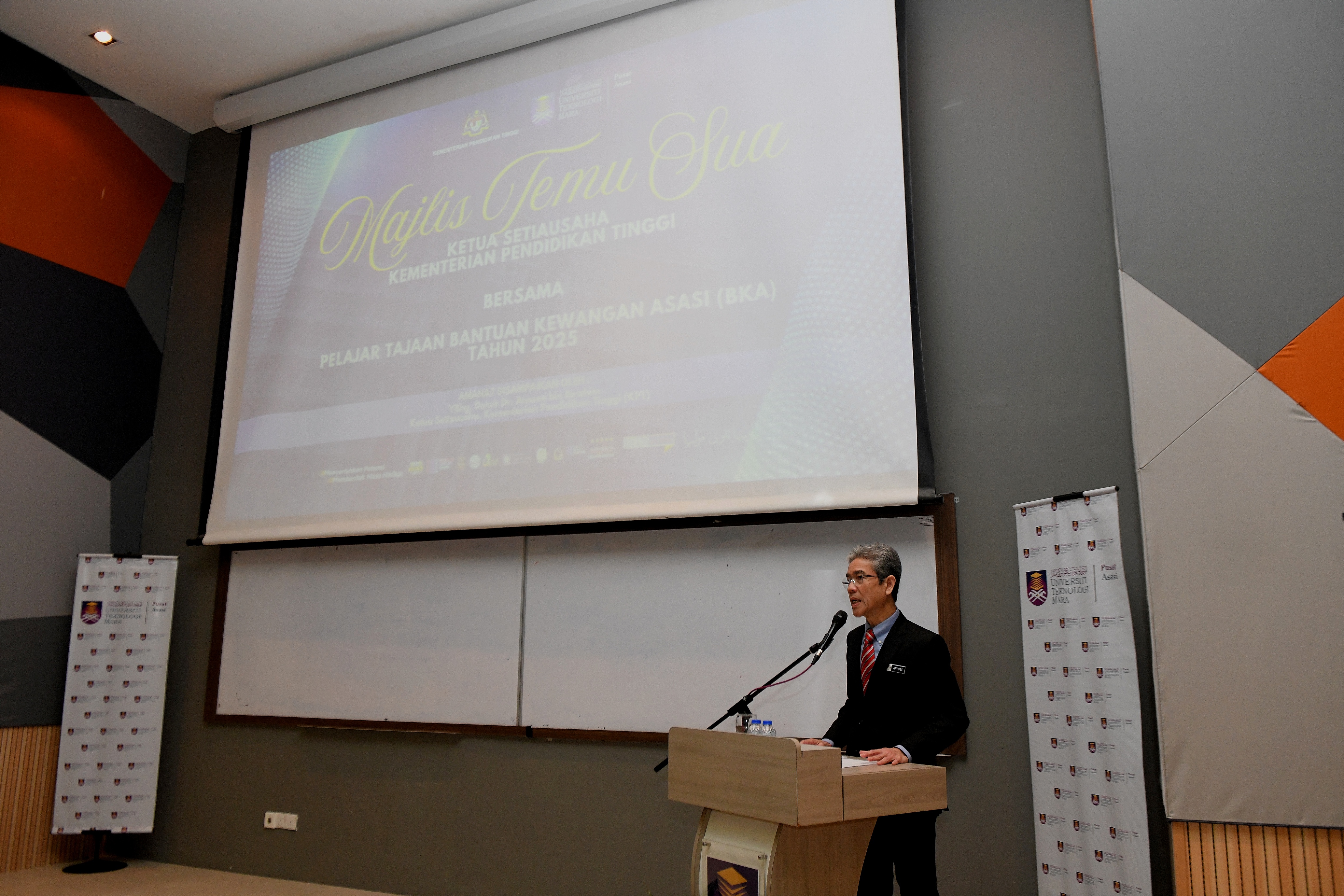 Perkara tersebut disampaikan oleh Ketua Setiausaha (KSU) KPT, YBhg. Datuk Dr. Anesee Ibrahim, semasa Program Temu Sua bersama pelajar tajaan Bantuan Kewangan Asasi (BKA) Tahun 2025 di Auditorium Universiti Teknologi MARA (UiTM), Cawangan Selangor, Kampus Dengkil pagi tadi.