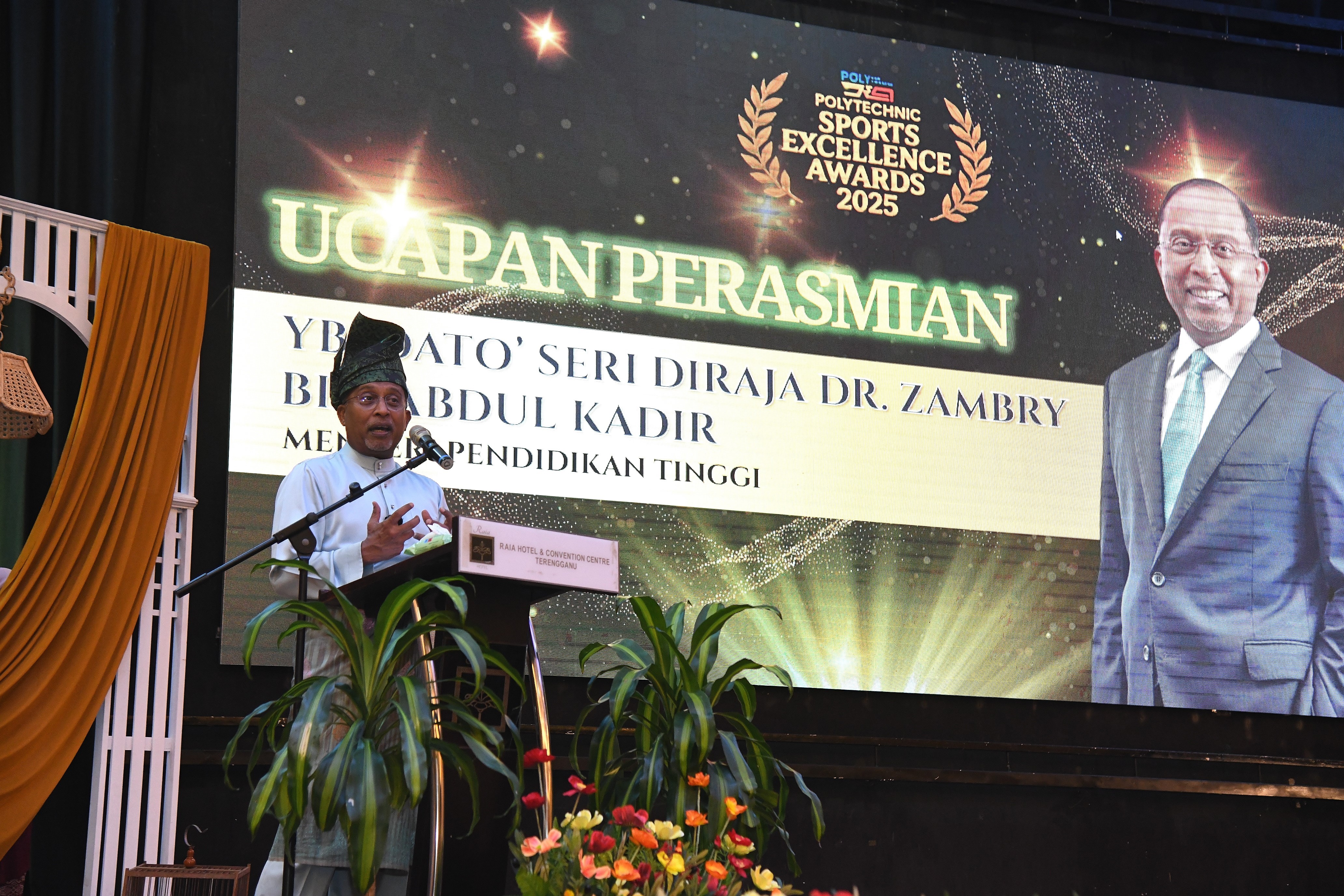 Majlis pengiktirafan berprestij yang menghimpunkan jaguh sukan politeknik seluruh negara itu telah dirasmikan oleh Menteri Pendidikan Tinggi, YB Dato' Seri Diraja Dr. Zambry Abd Kadir.