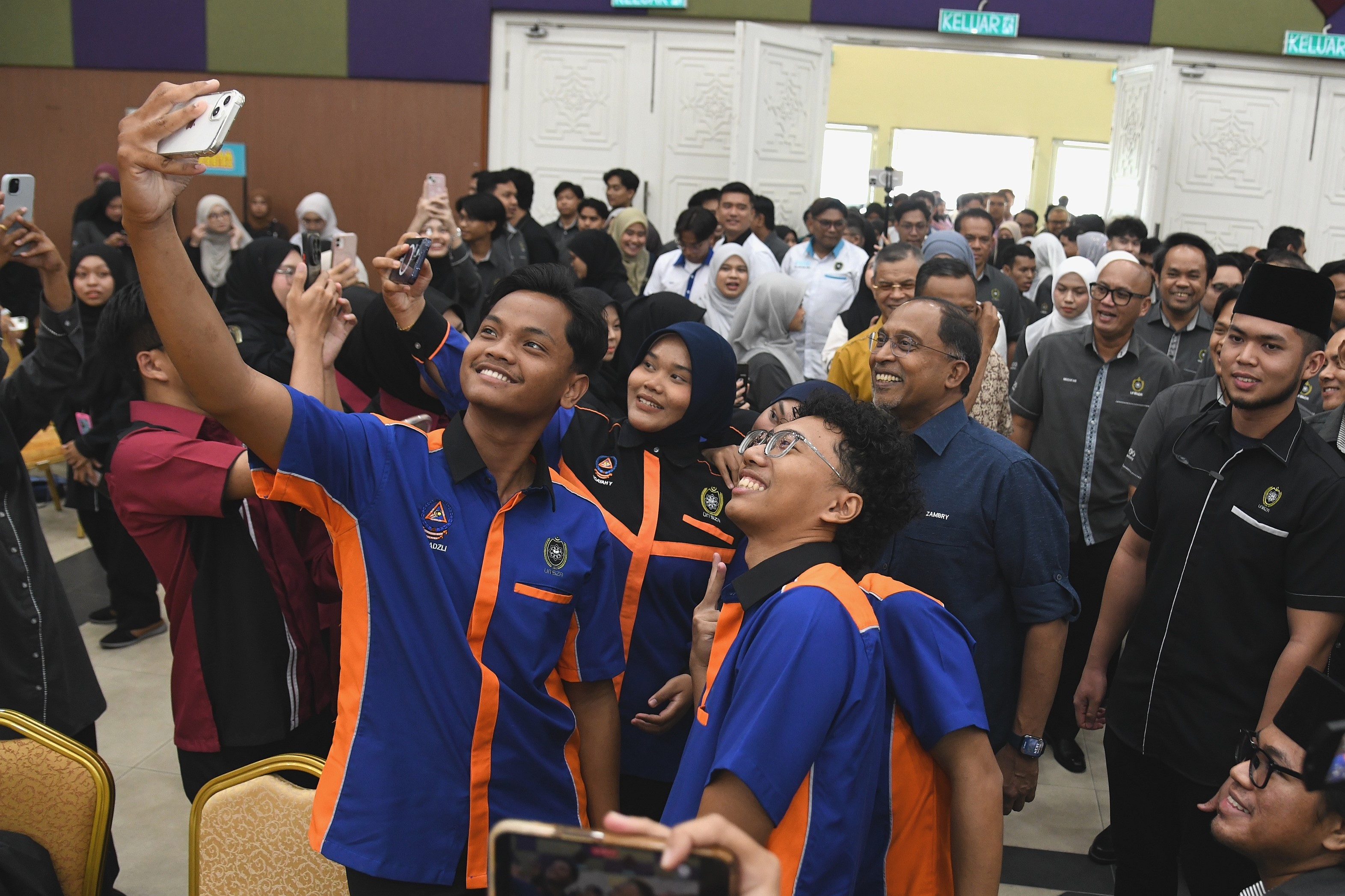 Turut hadir, Naib Canselor UniSZA, Prof. Datuk Dr. Fadzli Adam; Pengarah Bahagian Hal Ehwal Pelajar Jabatan Pendidikan Tinggi, Hirman Awang; YDP. Majlis Perwakilan Pelajar UniSZA, Muhammad Amirul Irfan Amir Hamzah; dan YDP Perwakilan Pelajar UMT, Wan Darwish Hazim Wan Ahmad Rusdi.