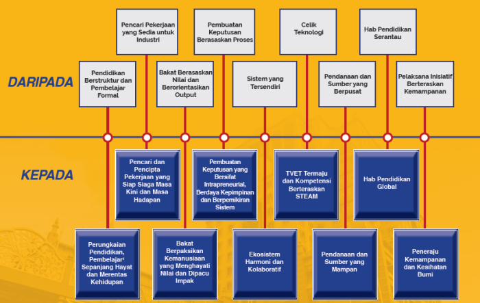 Tumpuan kepada kecekapan literasi teknologi diperkembangkan kepada TVET Termaju dan kompetensi berteraskan STEAM yang mengintegrasikan Sains, Teknologi, Kejuruteraan, Sastera (merangkumi Seni, Kemanusiaan dan Budaya) dan Matematik. Pendekatan pendanaan dan sumber yang berpusat beralih kepada model pendanaan mampan yang dipacu oleh tadbir urus yang bertanggungjawab.