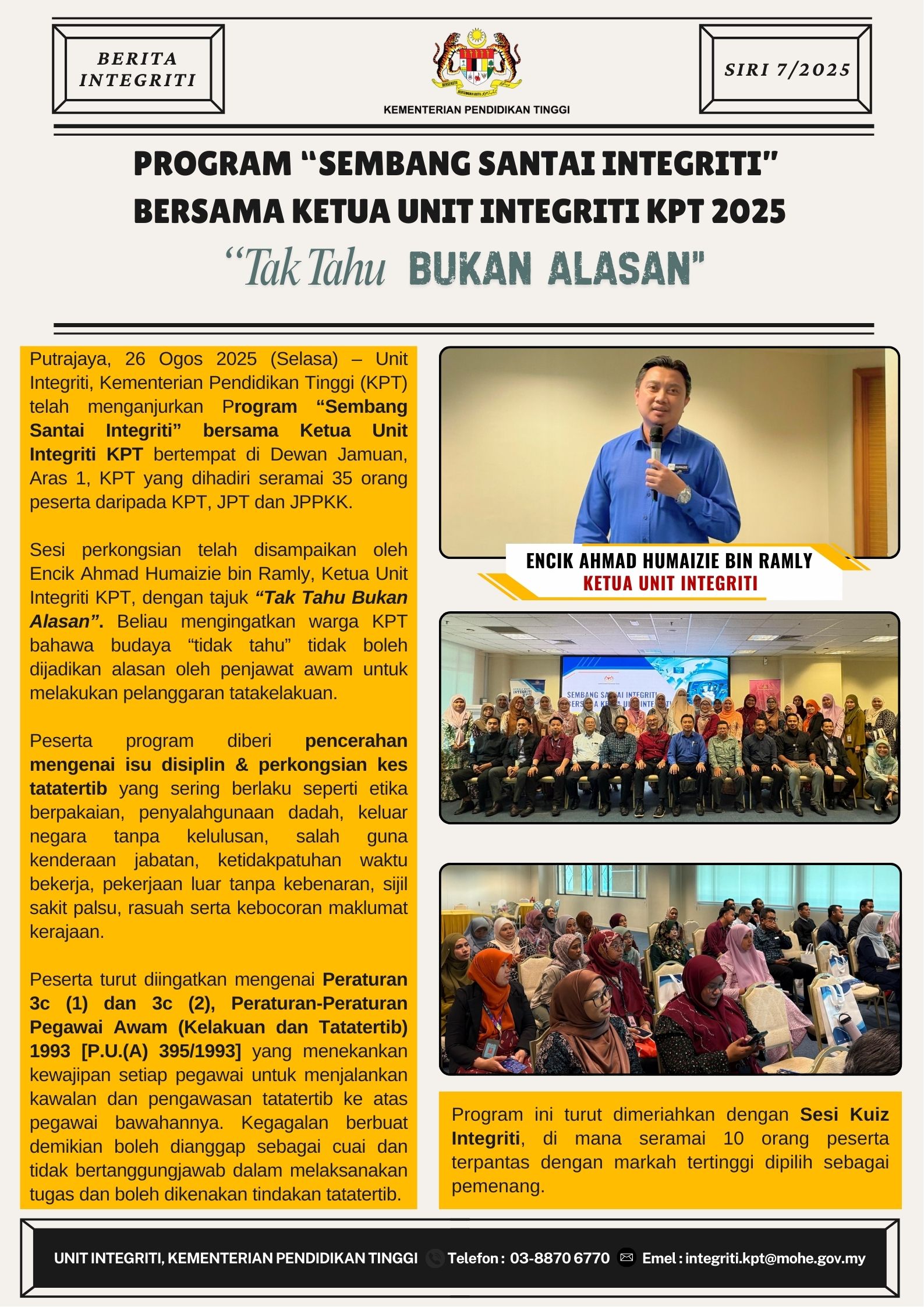 Berita Integriti KPT Siri 7/2025