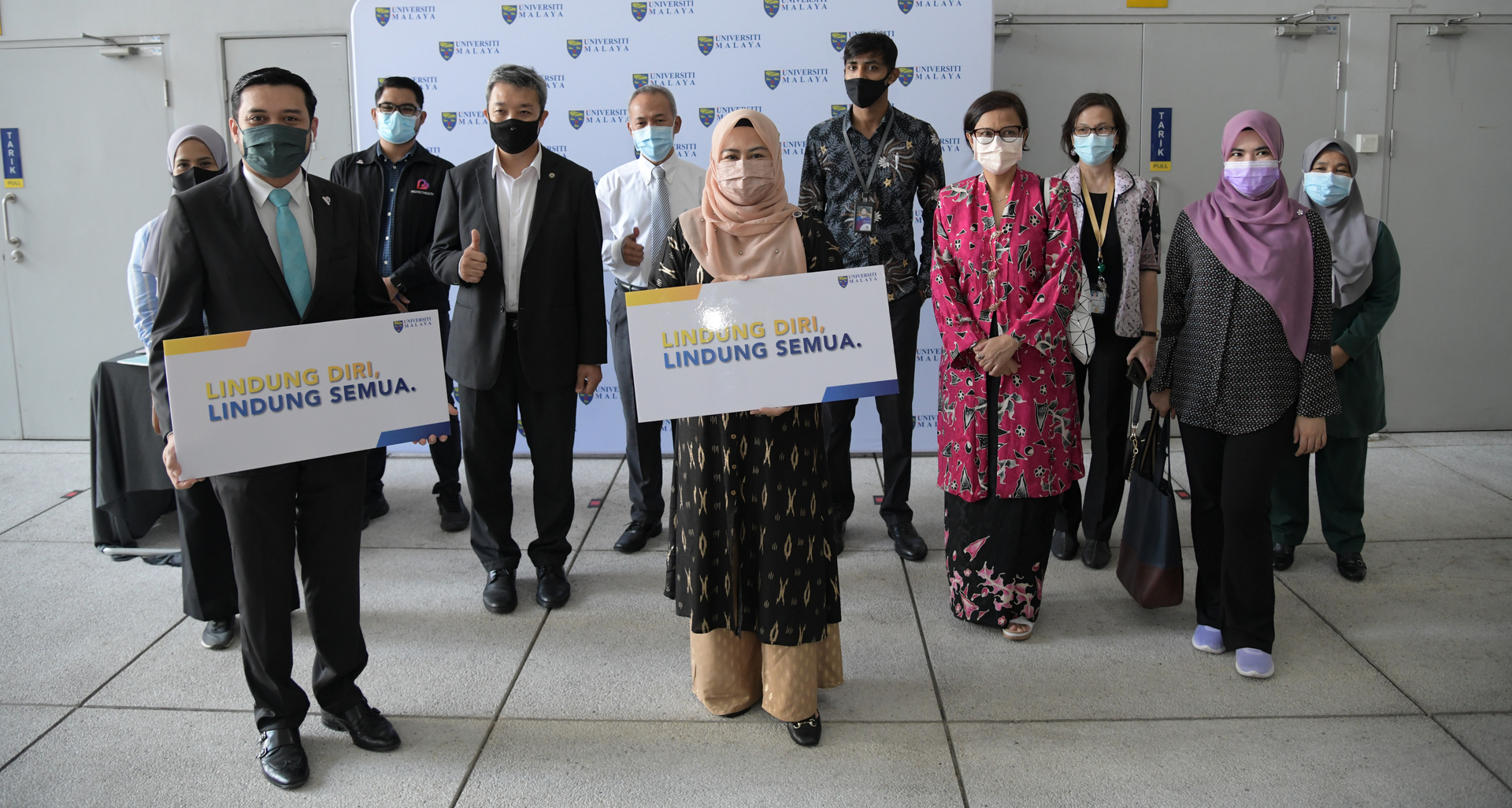Turut hadir, Datuk Rosli Yaakub, Timbalan Ketua Setiausaha (Pengurusan dan Pembangunan), Prof Dato' Dr. Husaini Omar, Ketua Pengarah Pendidikan Tinggi dan Prof. Dato' Ir. Dr. Mohd Hamdi Abd Shukor, Naib Canselor UM.