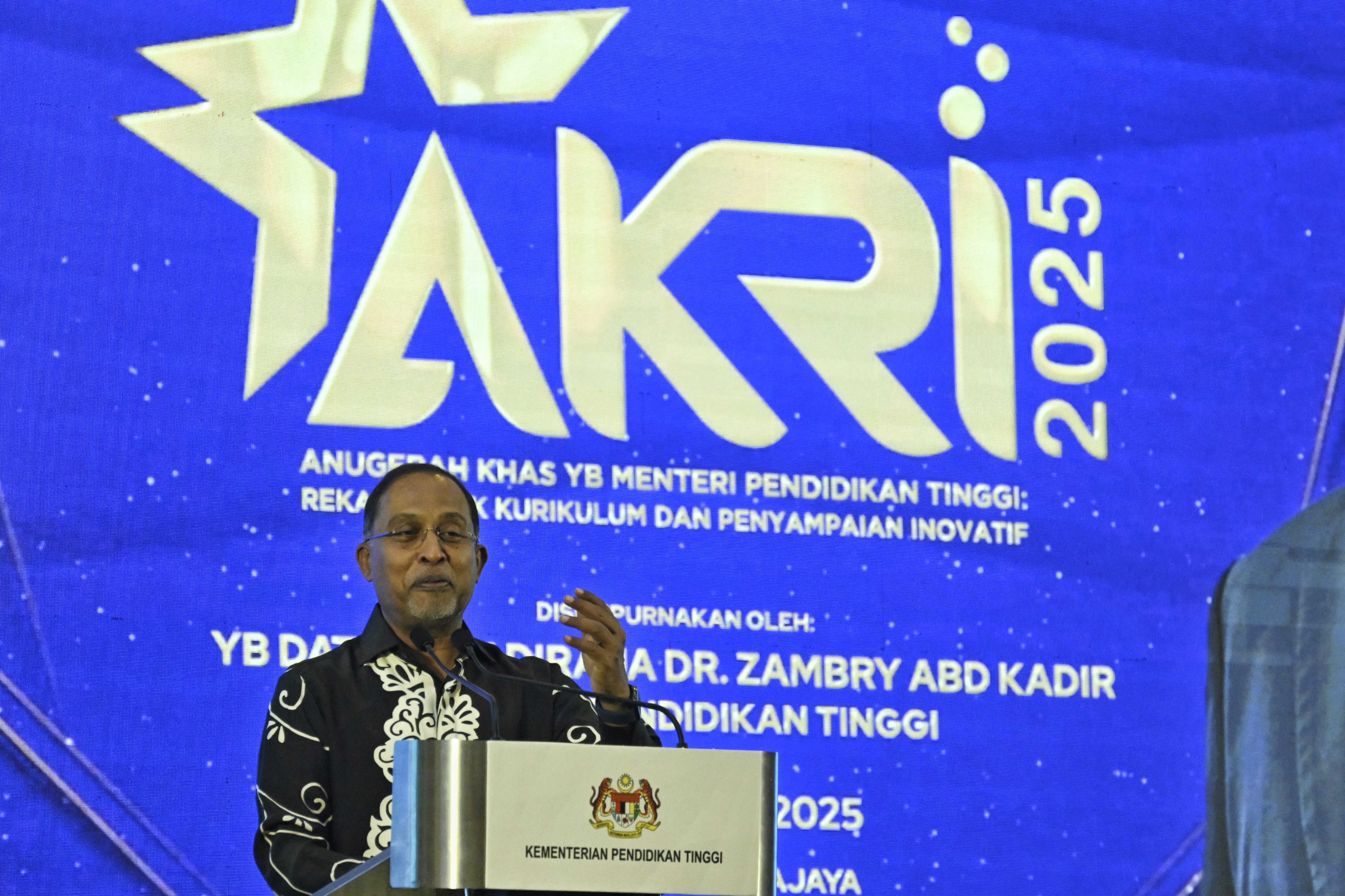 Bagi mengiktiraf usaha proaktif Institusi Pendidikan Tinggi (IPT) awam dan swasta, Kementerian Pendidikan Tinggi (KPT) telah menganjurkan Anugerah Khas YB Menteri Pendidikan Tinggi: Reka Bentuk Kurikulum Dan Penyampaian Inovatif (AKRI) 2025 yang telah disempurnakan oleh Menteri Pendidikan Tinggi, YB Dato' Seri Diraja Dr. Zambry Abd Kadir semalam.