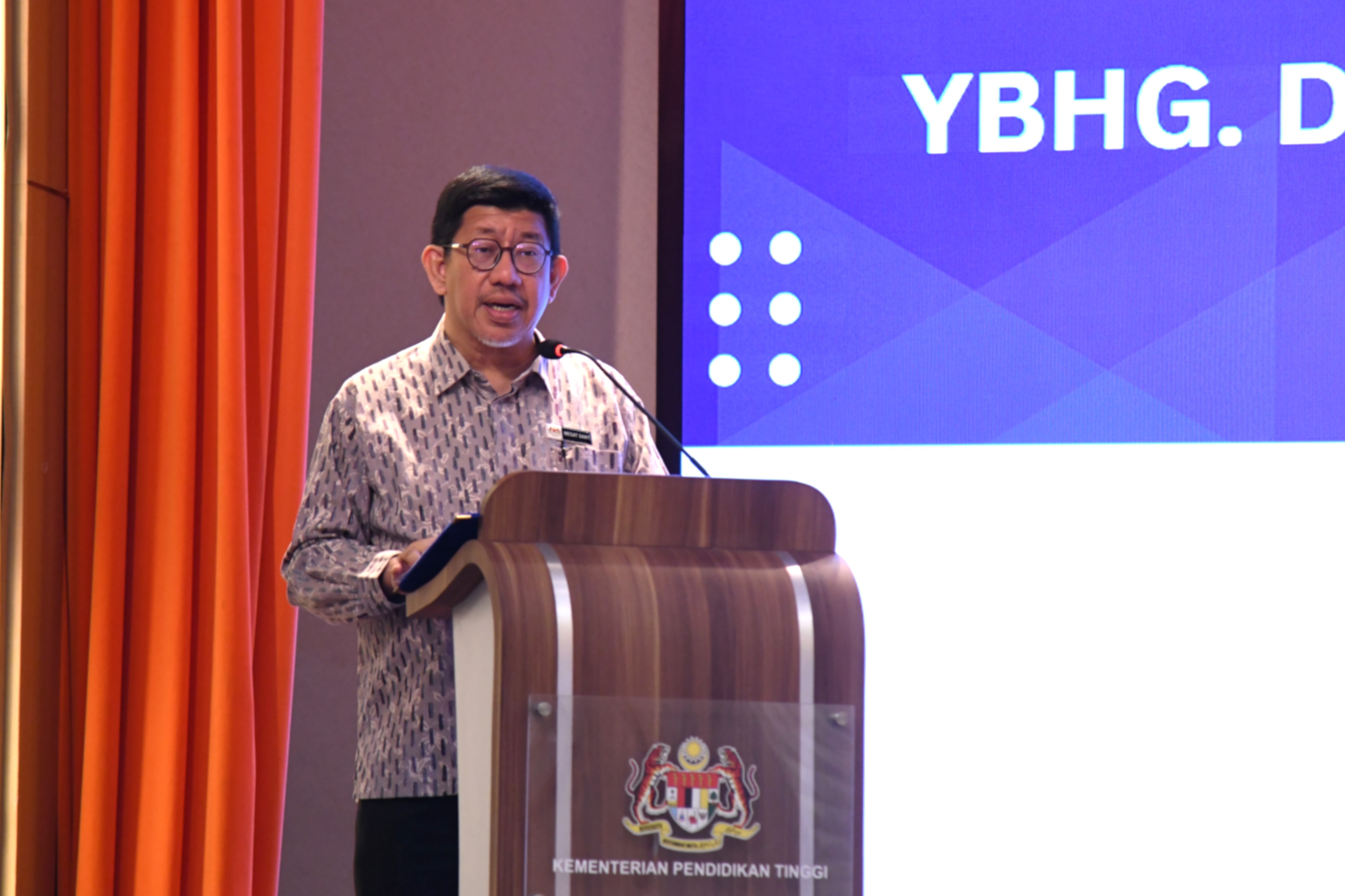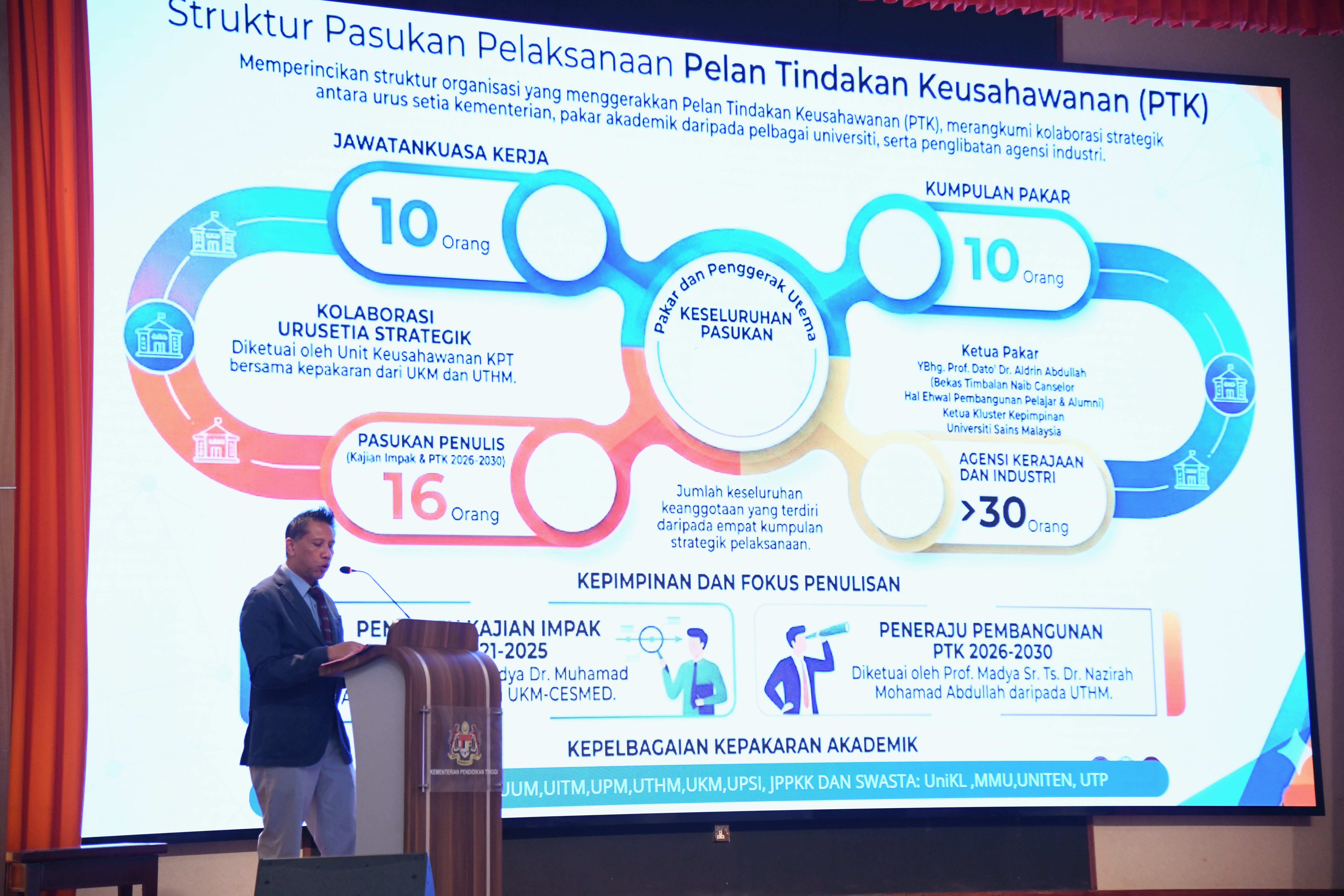 Sesi yang berlangsung pada pagi ini telah disempurnakan oleh Timbalan Ketua Setiausaha (Dasar), YBhg. Dato’ Dr. Haji Megat Sany Megat Ahmad Supian, yang mewakili kementerian dalam menetapkan hala tuju baharu agenda keusahawanan akademik.