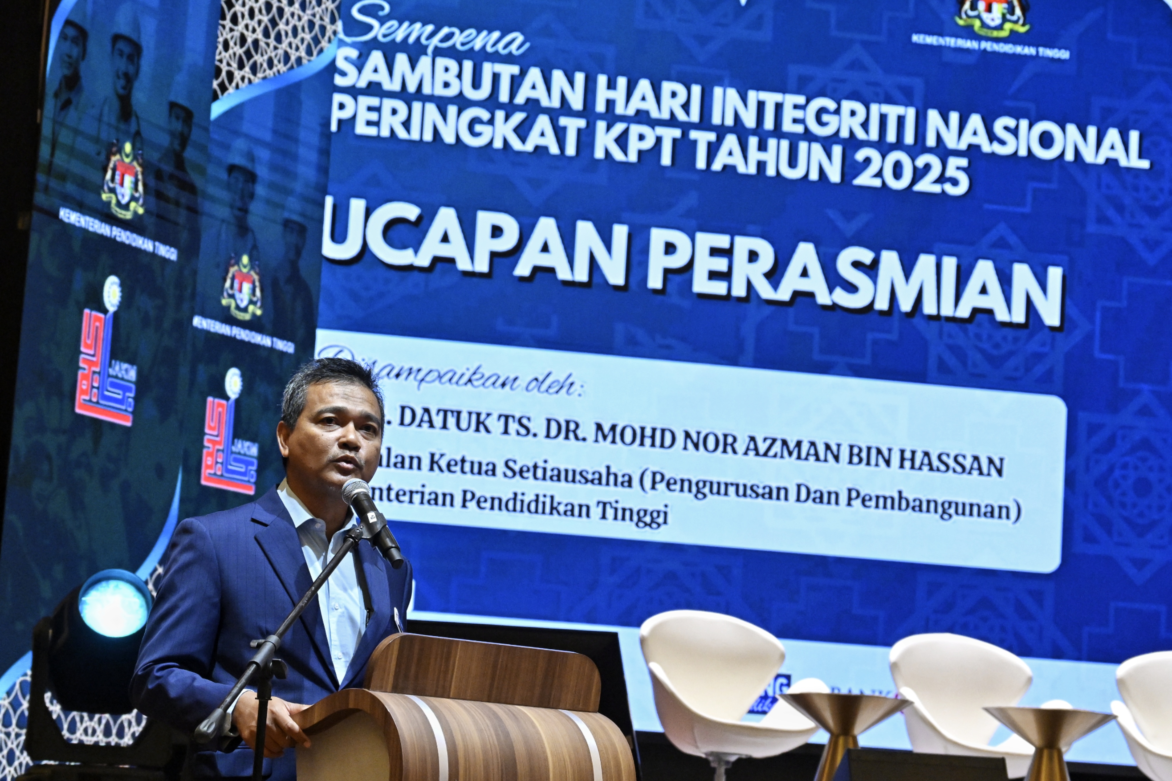 Sehubungan itu, Kementerian Pendidikan Tinggi (KPT) telah menganjurkan Majlis Sambutan Hari Integriti Nasional Peringkat KPT Tahun 2025 yang dirasmikan oleh Timbalan Ketua Setiausaha (Pengurusan dan Pembangunan), YBhg. Datuk Ts. Dr. Mohd Nor Azman Hassan.