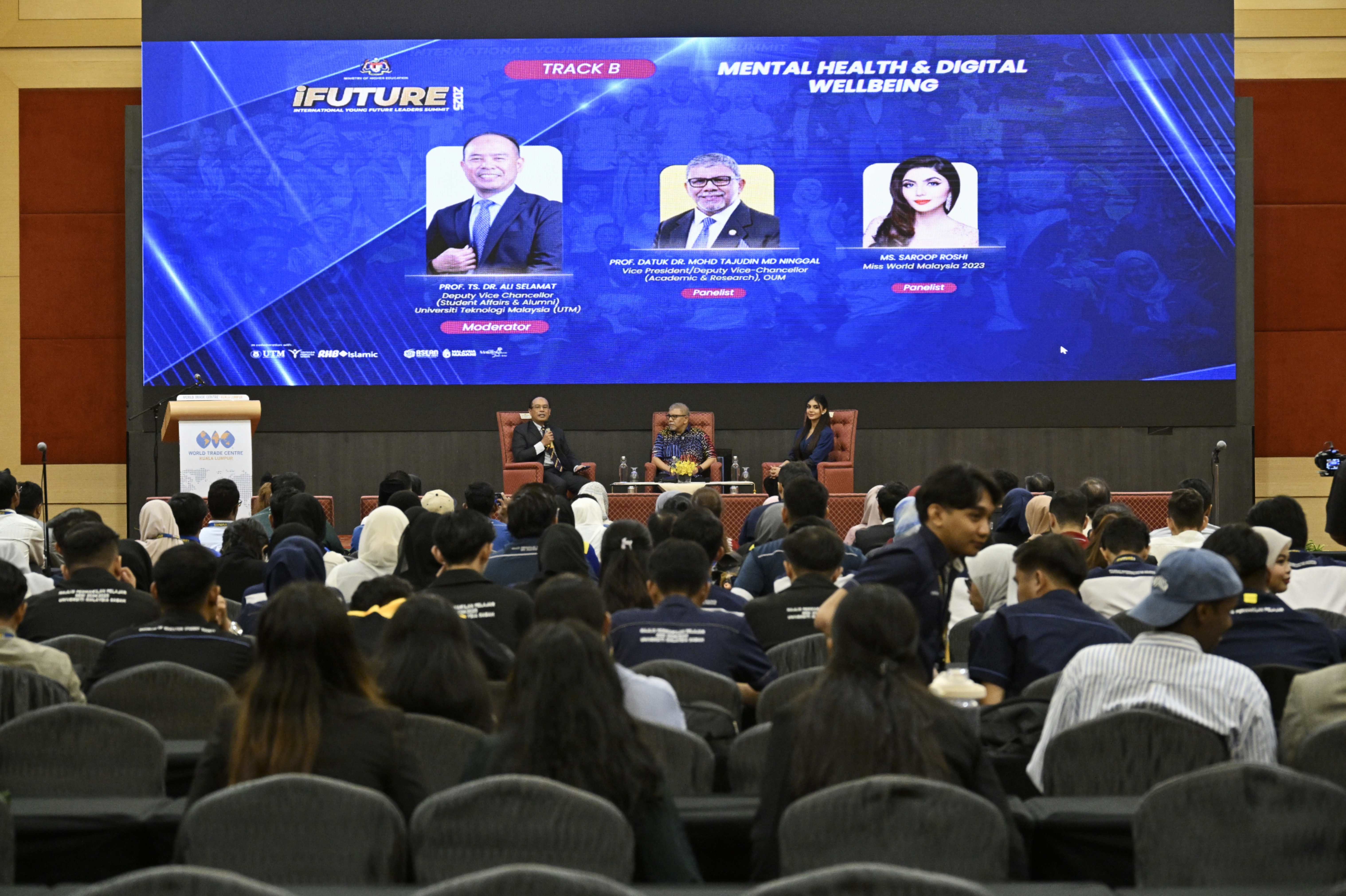 Sesi itu menampilkan Naib Presiden merangkap Timbalan Naib Canselor (Akademik dan Penyelidikan) Open University Malaysia, Prof. Datuk Dr. Mohd Tajuddin Md Ninggal, dan Miss World Malaysia 2024, Saroop Roshi, dengan Timbalan Naib Canselor (Hal Ehwal Pelajar dan Alumni) UTM, Prof. Ts. Dr. Ali Selamat, sebagai hos.