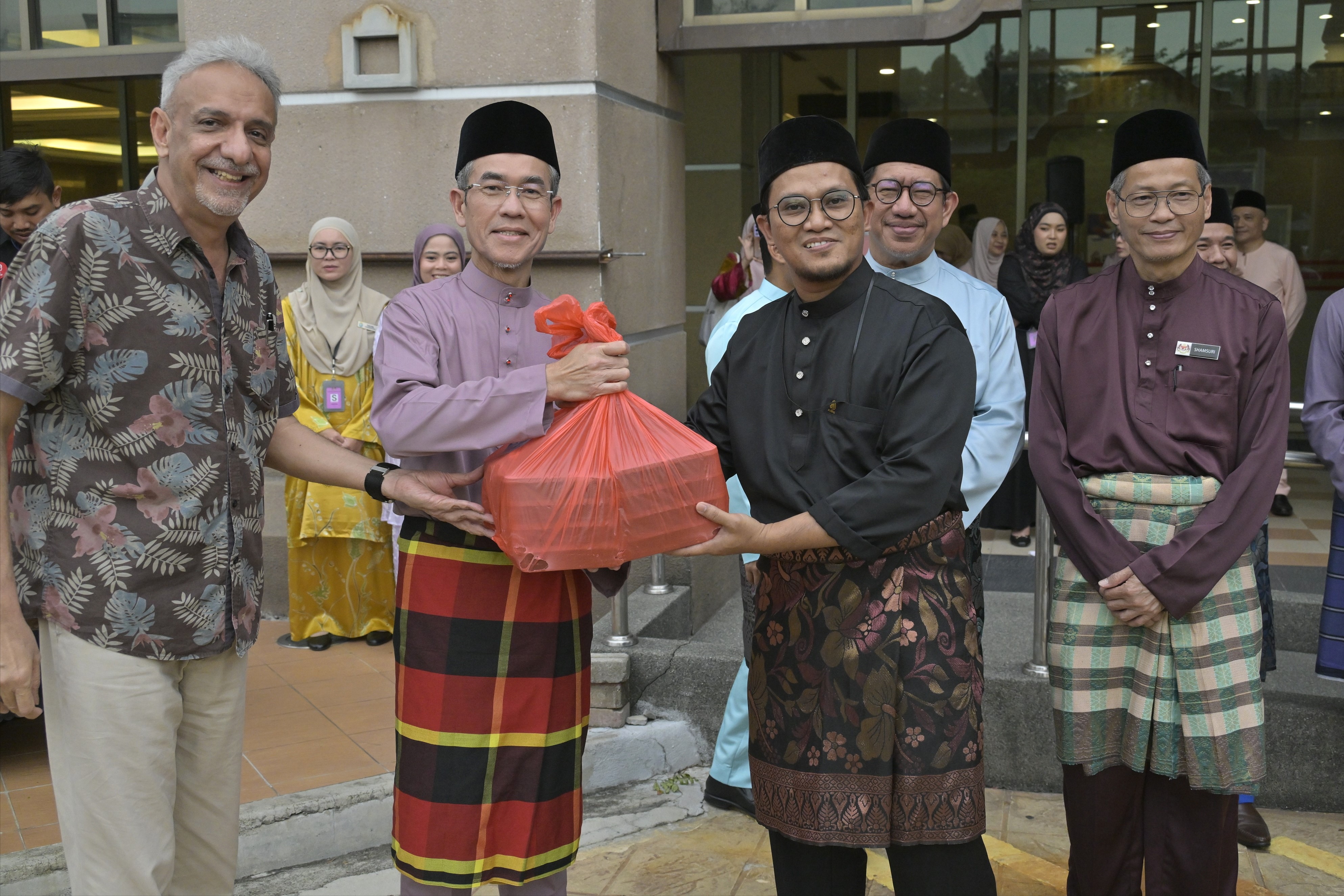 Majlis turut diserikan dengan penyampaian sumbangan Aidilfitri kepada 30 penerima dalam kalangan warga kementerian yang terdiri daripada kategori ibu tunggal, bapa tunggal, asnaf, orang kurang upaya (OKU) serta pesakit kronik sebagai tanda keprihatinan kementerian terhadap kebajikan warganya.