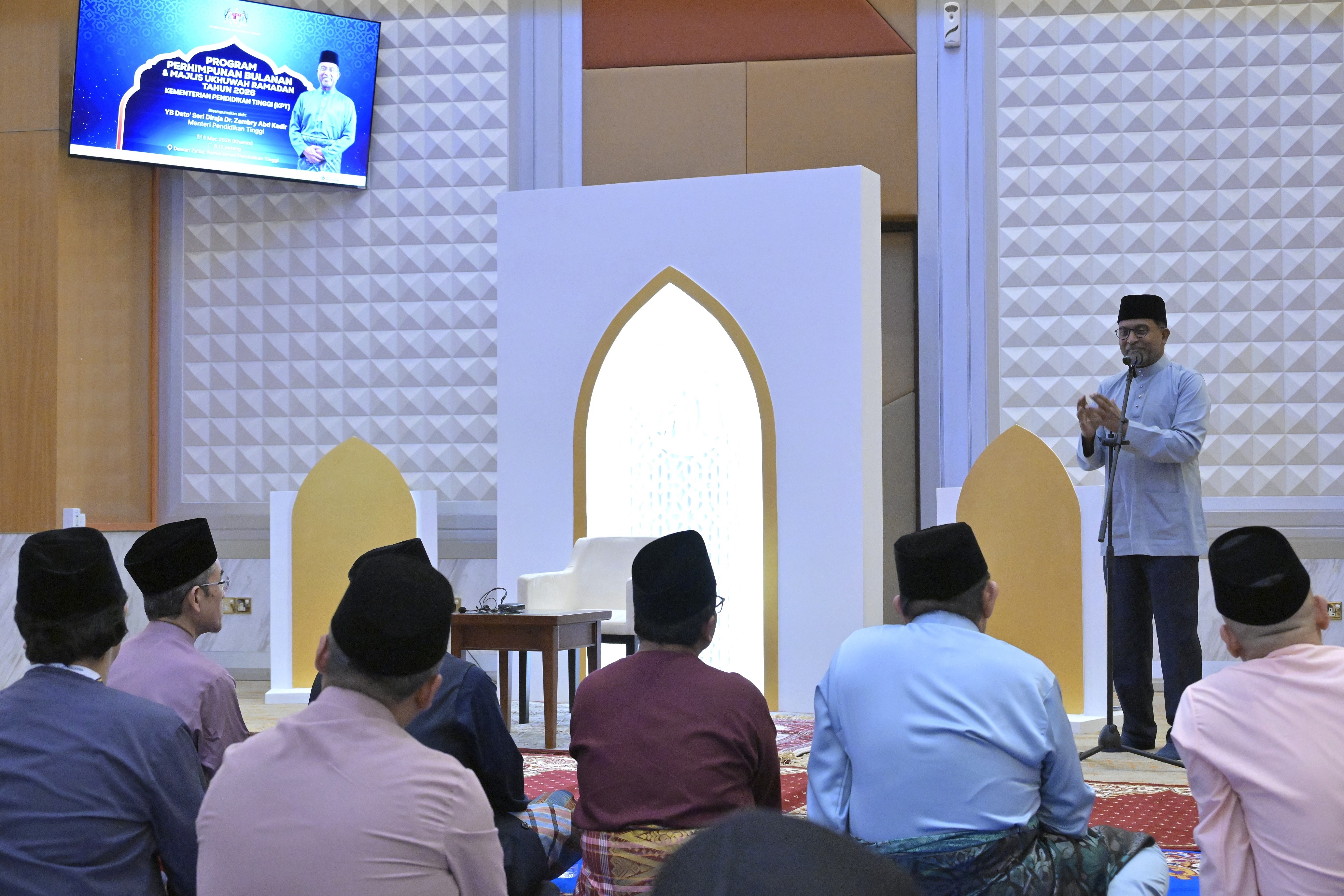 Suasana penuh kemesraan dan semangat kebersamaan mewarnai Lobi Kementerian Pendidikan Tinggi (KPT) apabila warga kementerian berhimpun dalam Program Perhimpunan Bulanan dan Majlis Ukhuwah Ramadan KPT Tahun 2026 yang dianjurkan bagi menyemarakkan penghayatan Ramadan serta memperkukuh jalinan ukhuwah dalam kalangan warga kementerian semalam.