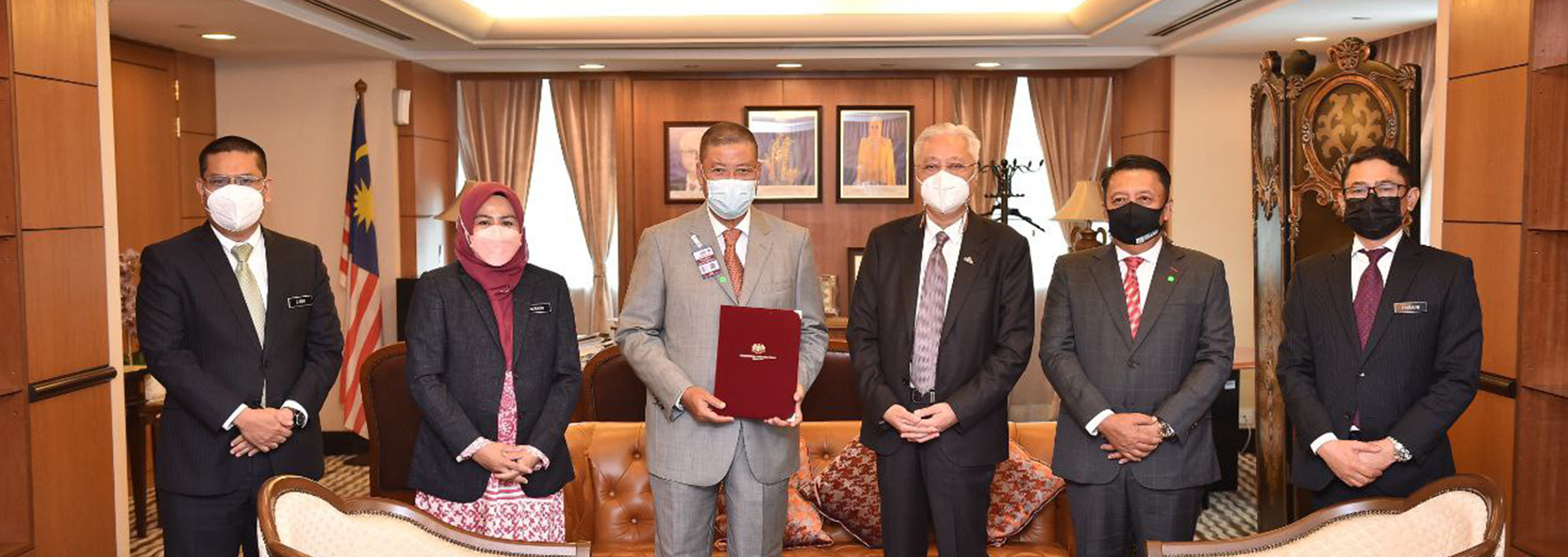 YAB Datuk Seri Ismail Sabri Yaakob, Perdana Menteri menyerahkan surat pelantikan kepada YBhg. Tan Sri Hj. Mohamad Fatmi Hj. Che Salleh sebagai Pengerusi Lembaga Pengarah Universiti Malaysia Kelantan (UMK) disaksikan oleh YB Datuk Seri Dr. Noraini Ahmad, Menteri Pengajian Tinggi di Parlimen hari ini.