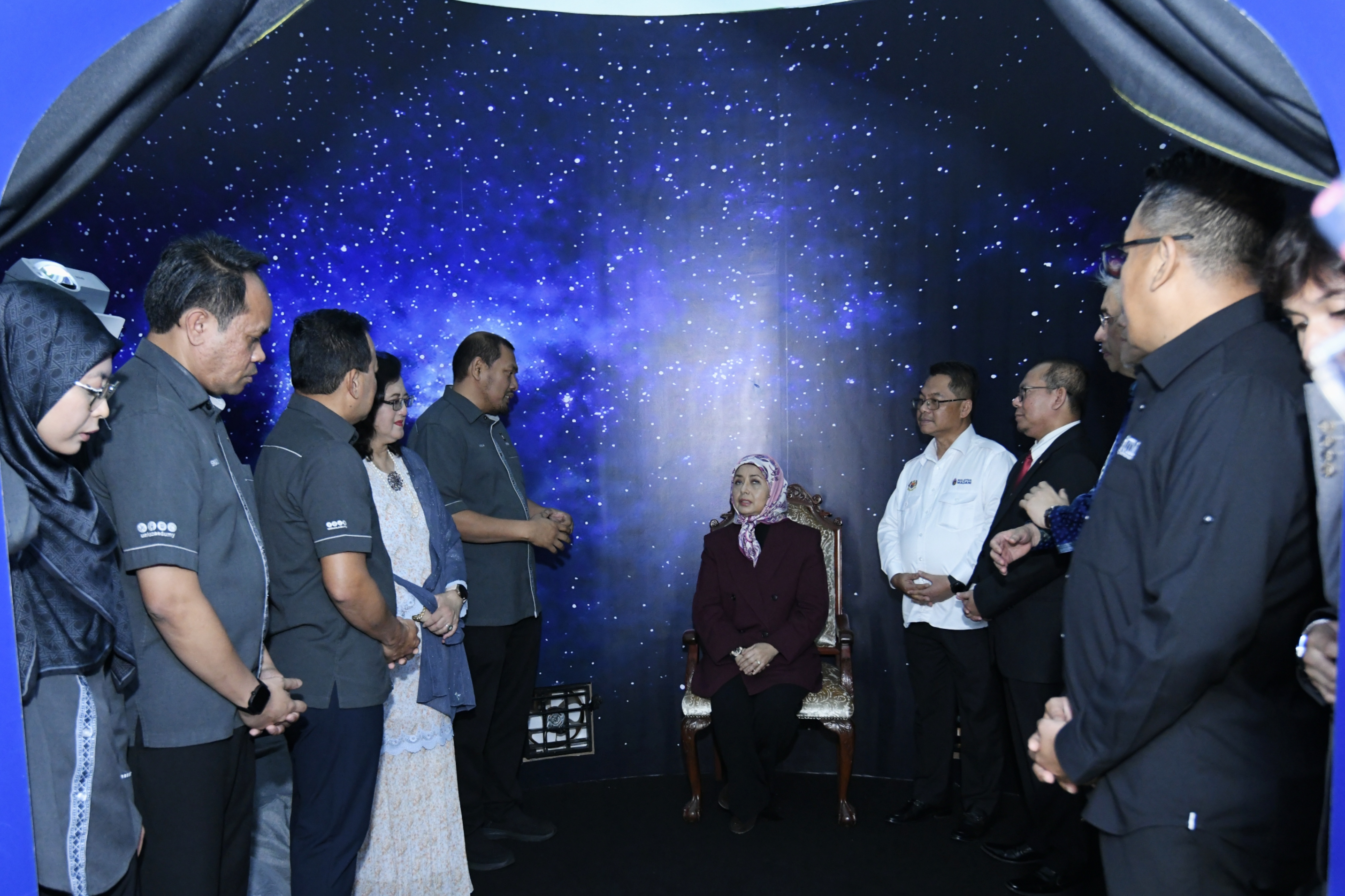 Kebawah Duli Yang Maha Mulia Seri Paduka Baginda Raja Permaisuri Agong Raja Zarith Sofiah berkenan bercemar duli melawat Pameran Imersif Inovasi Sarjana Muslim di Festival Idea Putrajaya (Putrajaya FOI) 2025 pagi tadi.