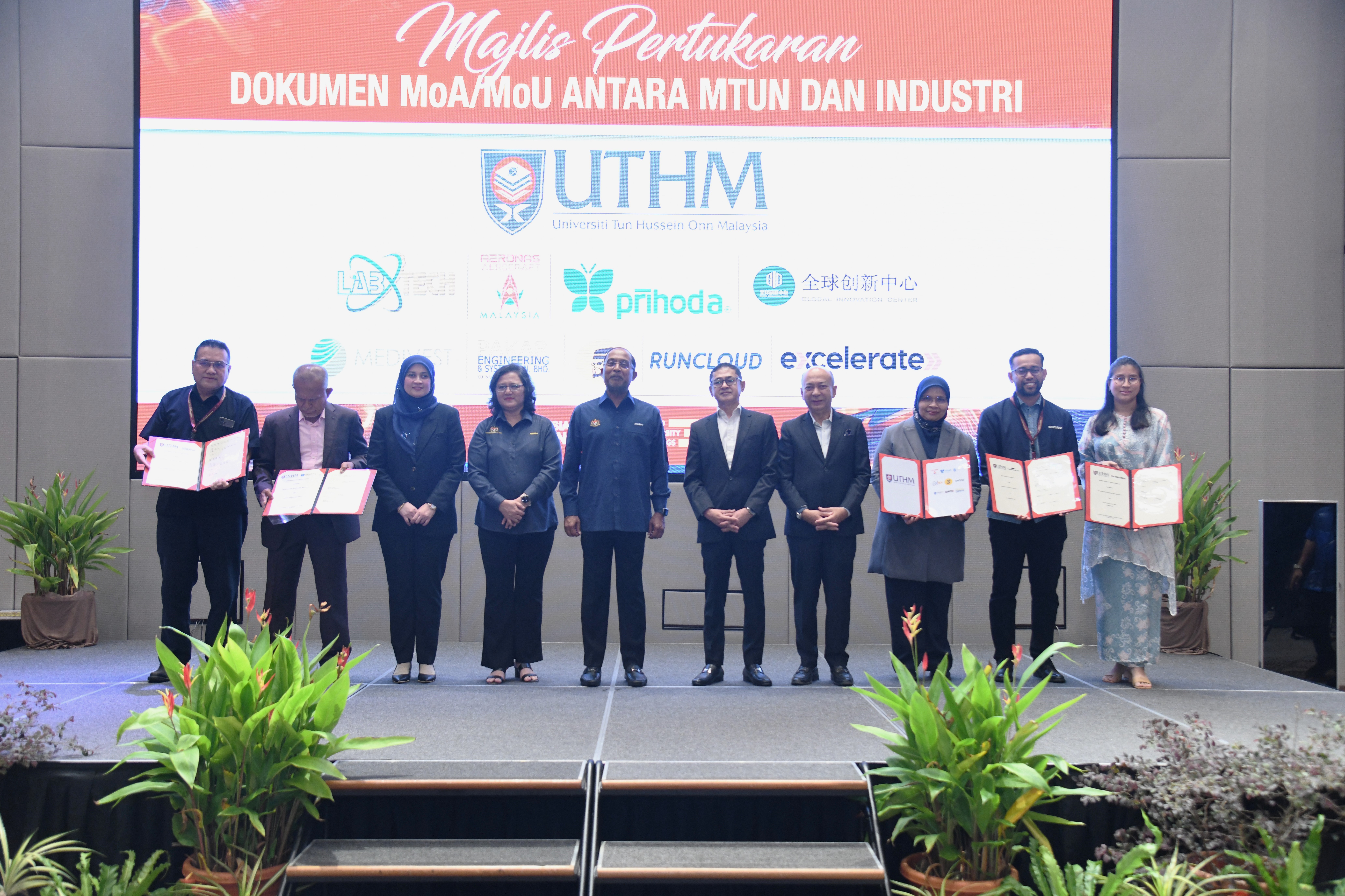 Majlis berkenaan turut menyaksikan pertukaran 27 dokumen Memorandum Persefahaman (MoU) dan Memorandum Perjanjian antara MTUN dan rakan industri, selain penyerahan sumbangan endowmen industri berjumlah RM51.86 juta kepada UTeM serta RM50,000 kepada UTHM.