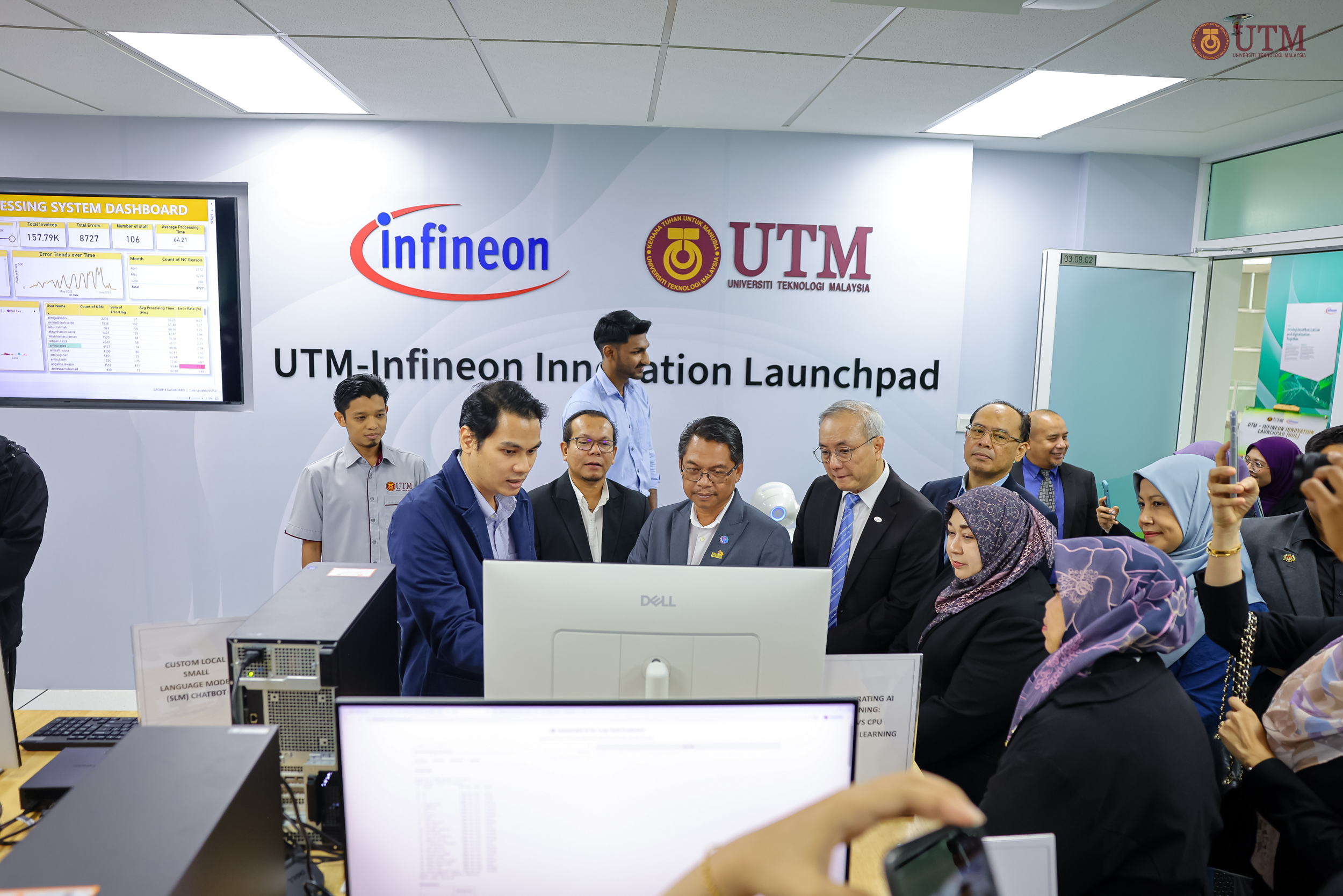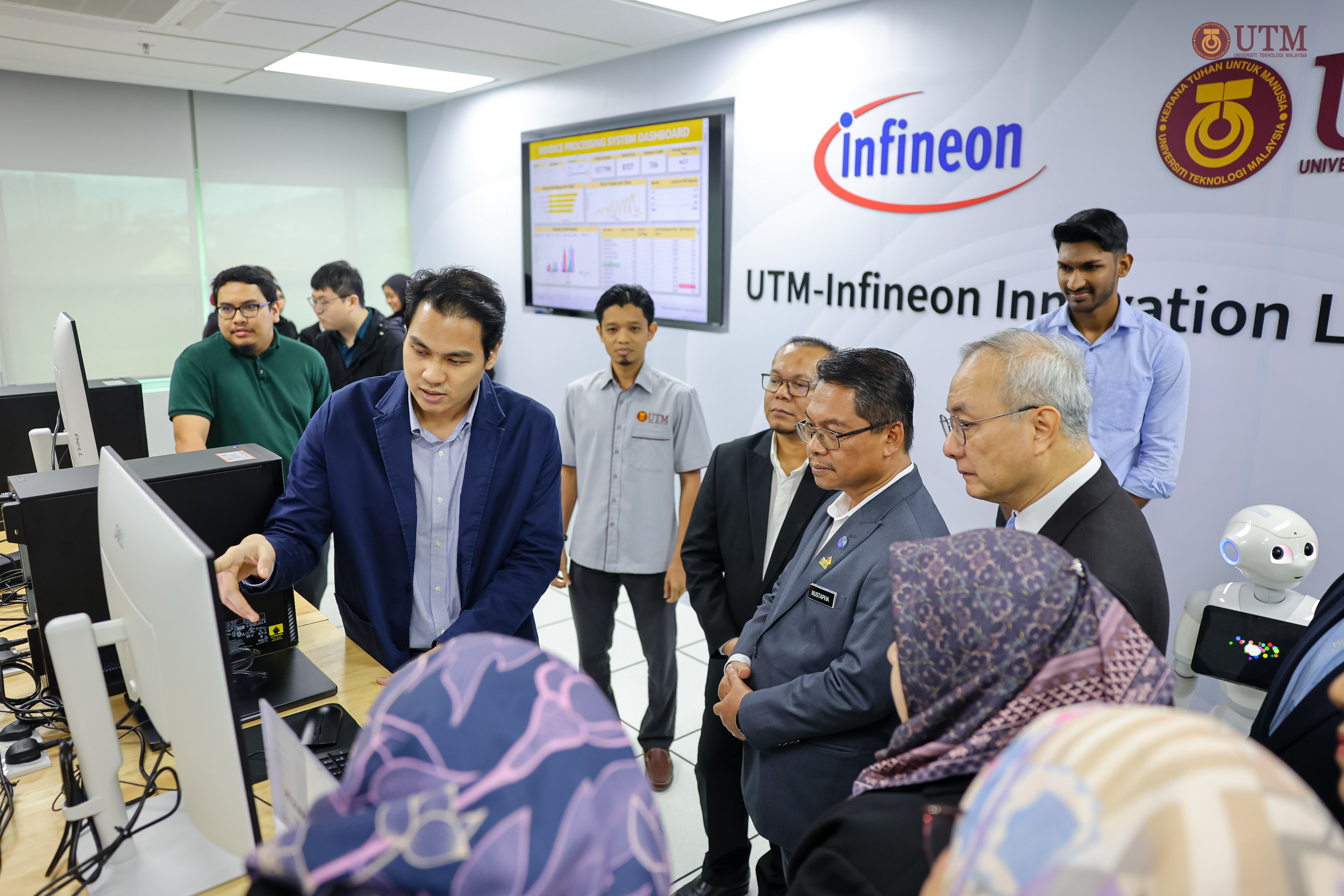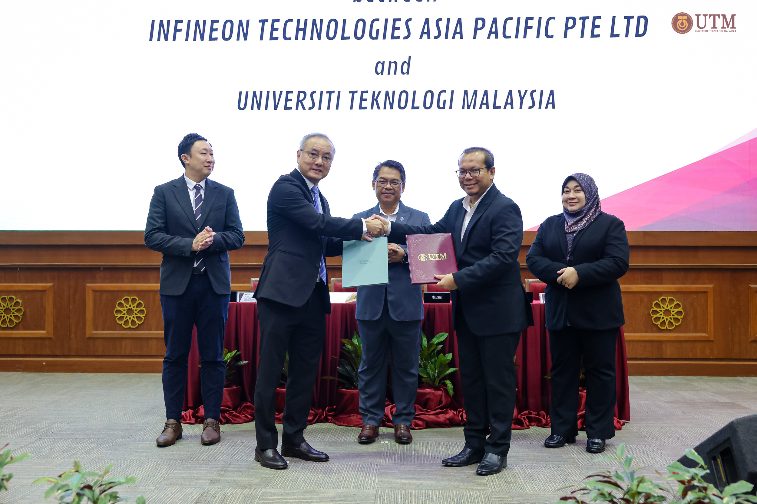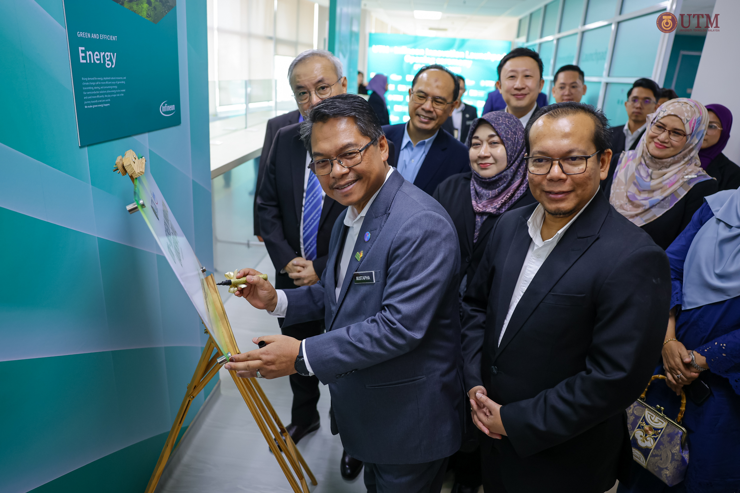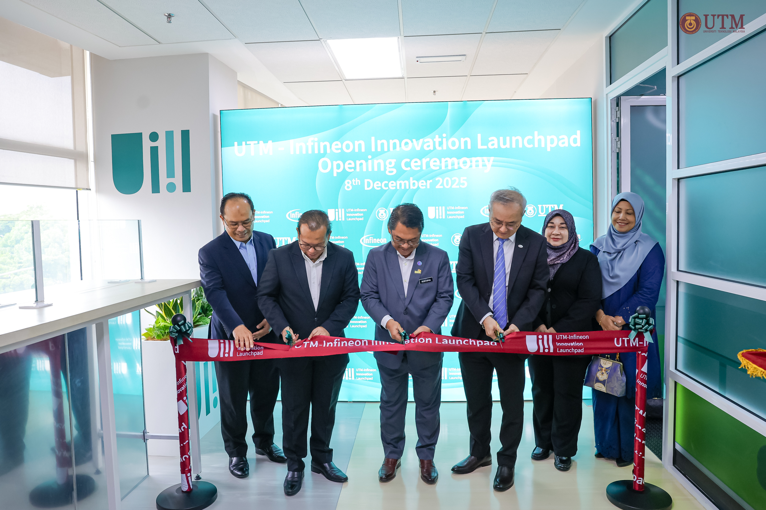 Turut hadir ialah Naib Canselor UTM, Prof. Dr. Mohd Shafry Mohd Rahim; Naib Presiden Infineon Technologies Asia Pacific, Goh Say Yeow; serta barisan kepimpinan industri dan universiti.
