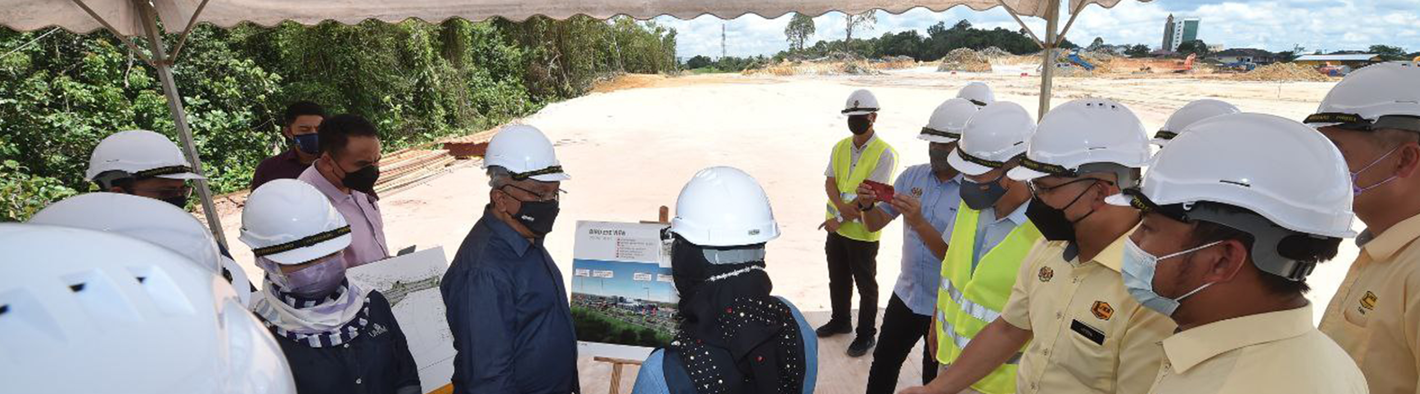 Sebelum berlepas pulang, YB Datuk Seri Dr. Noraini Ahmad, Menteri Pengajian Tinggi sempat meluangkan masa melawat tapak pembinaan Hospital Pengajar UNIMAS dan mendengar taklimat daripada pengurus projek.